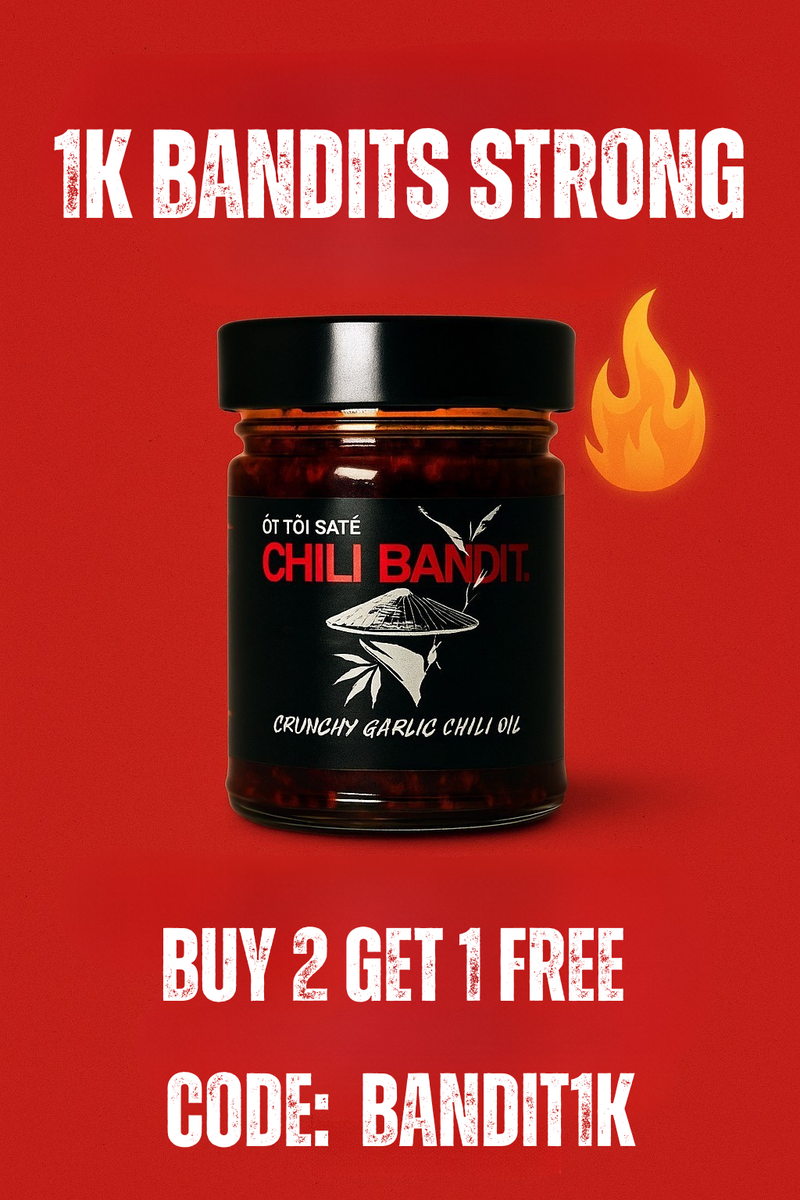 Chili Bandit was born from a family recipe passed down through generations — our mom’s legendary Crunchy Garlic Chili Oil. What began as a homemade staple at our family table has become a mission to share bold, authentic flavors with the world. Every jar captures the warmth, love, and spice that defined our childhood, crafted to bring that same joy and crunch to your kitchen. Join the Chili Bandit family, where every bite tells a story of flavor, family, and fire. 🌶️